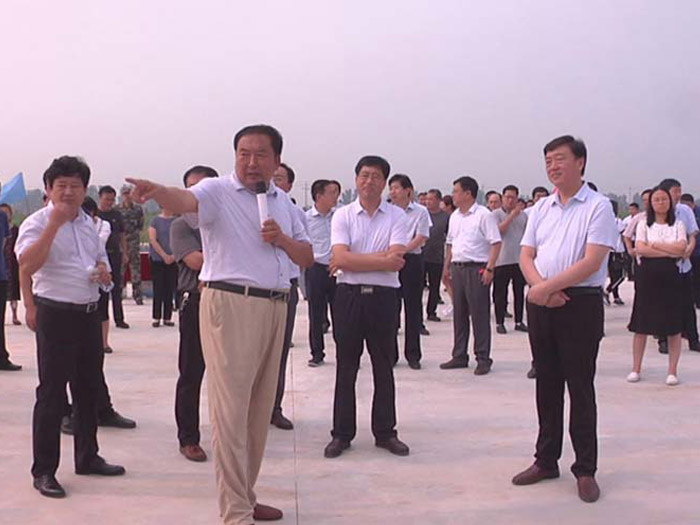 查看更多2018年7月19日,縣長王成宗(中)、開發(fā)區(qū)主任候會然(右一)在新公司施工現(xiàn)場視察工作